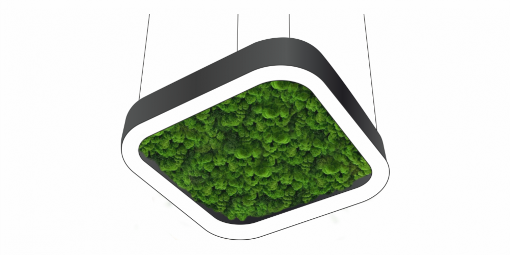 Светодиодный светильник в виде суперэллипса с натуральным стабилизированным мхом. Возможны различные варианты размеров, мощности и наполнения. Блок питания внутри корпуса светильника. Монтаж на тросовых подвесах или непосредственно к потолку или стене.