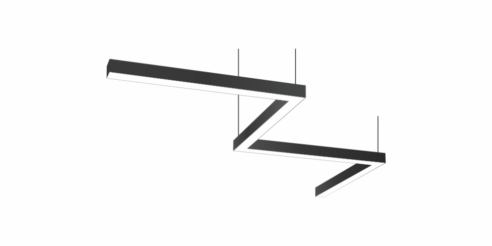 Фигурный светодиодный Светильник Зигзаг LiNE-Pro 4х500mm 80W 4000K черный предназначен для накладного или подвесного монтажа на тросовые подвесы. Изготовлен из сплошного сварного алюминиевого профиля в виде зигзага. Высота установки светильника регулируется подвесом с цанговым тросовым зажимом и может варьироваться от 0,05 метра до 4 метров от основного потолка. Светильник Зигзаг имеет равномерную засветку по всей площади рассеивателя. Источник питания находится внутри корпуса. Торцевые заглушки входят в комплект. Возможно изготовление светильника с магистральной проводкой для соединения нескольких светильников в сплошную конструкцию